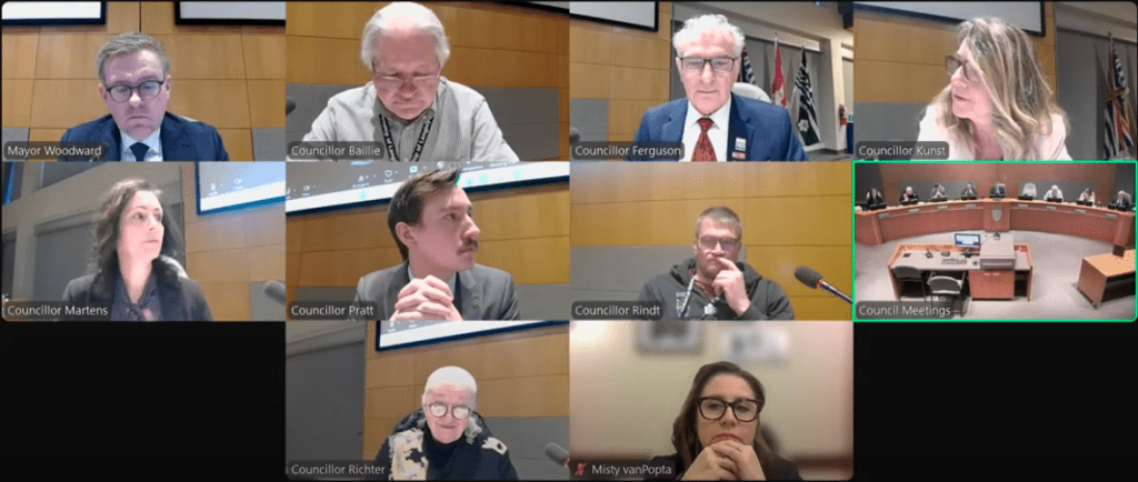 Notably, the discussion took place over a Zoom call due to Councillor van Popta’s absence from the council chamber, a direct consequence of her dual role splitting time between Langley and Victoria. Councillor van Popta’s double dipping has repeatedly forced council meetings online, further complicating discussions on key decisions.