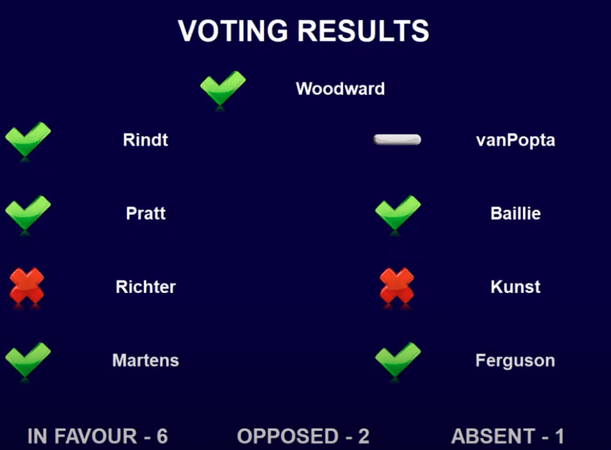Other councillors echoed similar concerns. Councillor Margaret Kunst questioned the transparency of the process, stating, “Does it not make anyone uncomfortable that we are negotiating land deals in a meeting?” Councillor Pratt called for consultation with the school district. Councillor Barb Martens also expressed unease, saying, “I’m uncomfortable with this.” Despite these objections, Woodward remained determined to push his motion through.
